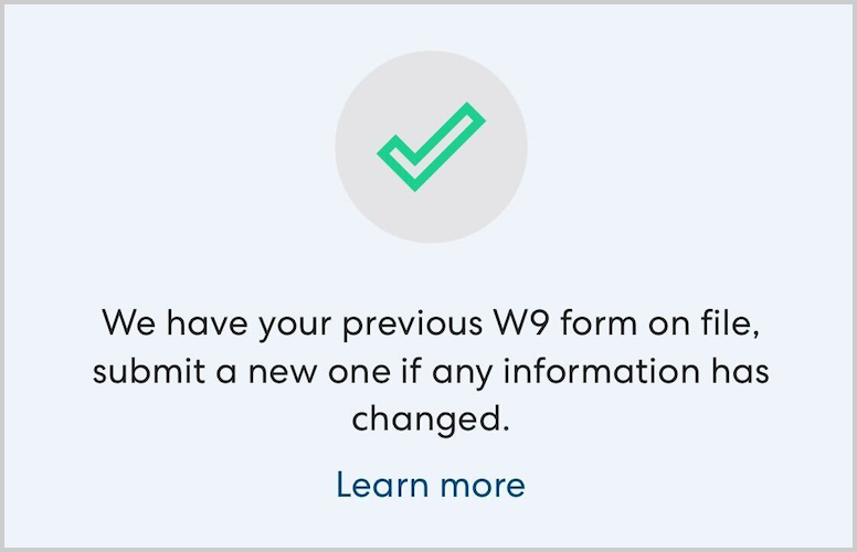 Note: If you submitted your most recent W-9 prior to December 2025 you will not see the option to download a copy of the current form on file. You do not need to take any action unless your information has changed.
