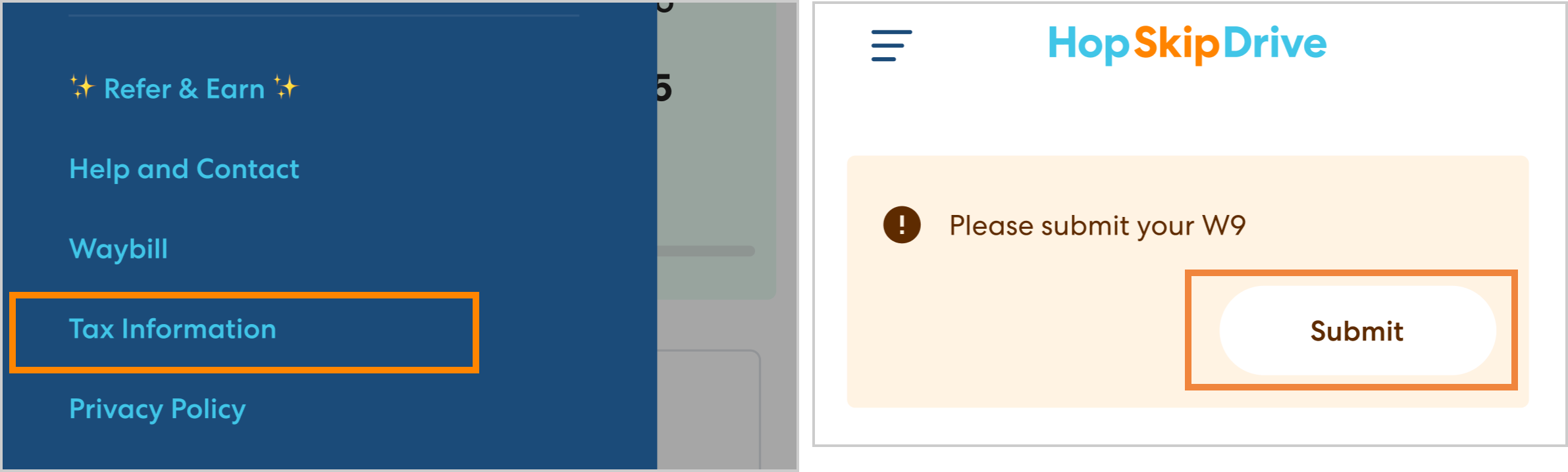 Form W-9 is the form used to provide your Taxpayer Identification Number number and certification to HopSkipDrive. You must submit a W-9 to receive payment from HopSkipDrive. You can learn more about Form W-9 on the IRS website here.
