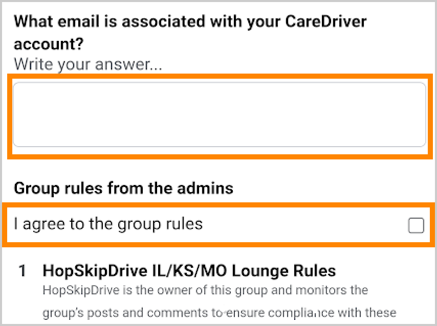 - Please review the group rules and select the checkbox next to I agree to the group rules.