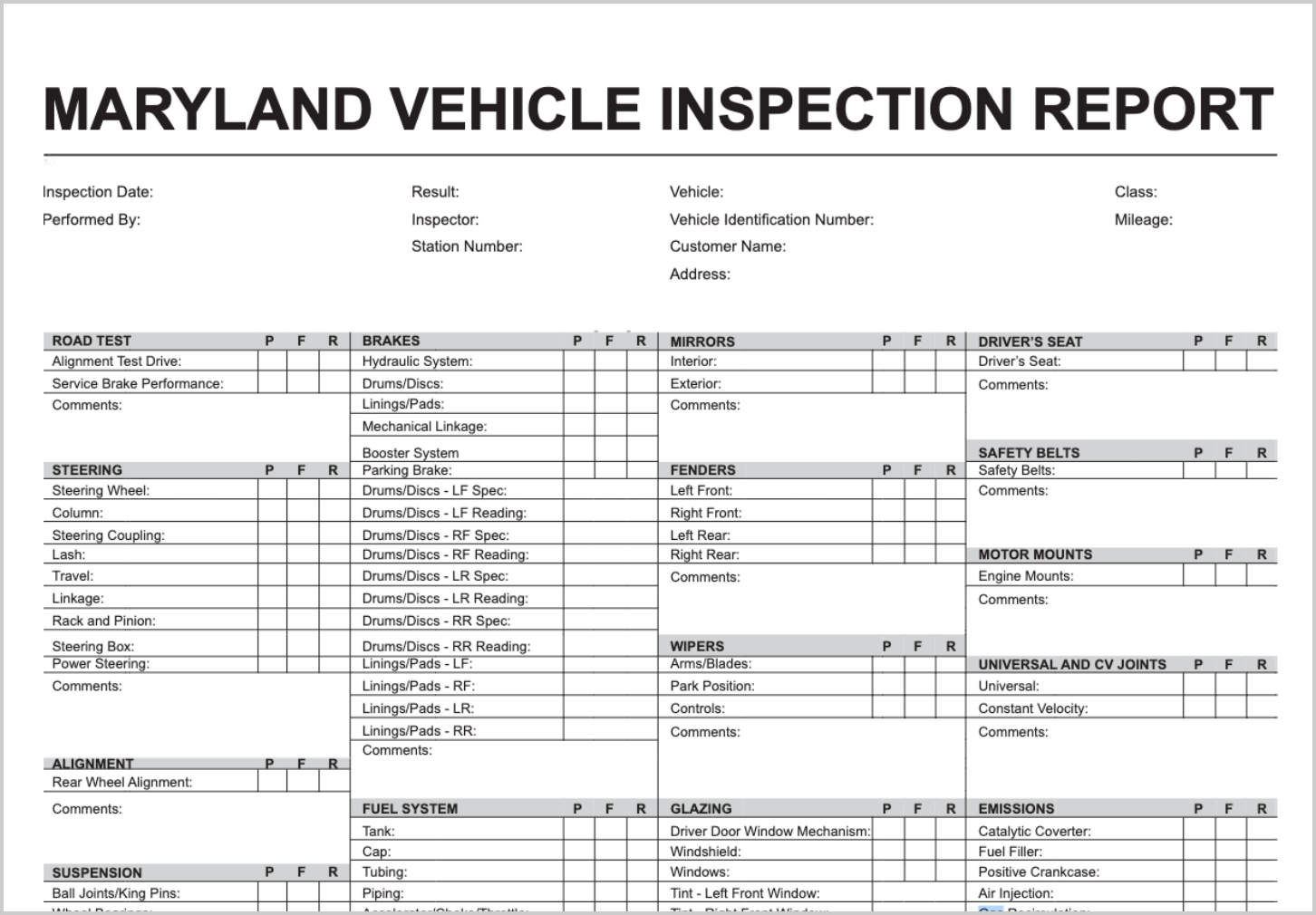 Maryland: The official Maryland Safety Inspection Certificate is accepted.