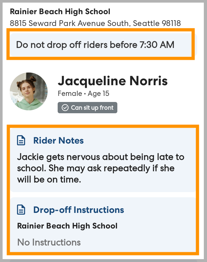- Carefully check the notes to learn how and where to drop off the rider. Keep in mind that each rider can also have special instructions which may be different than the instructions for other riders at the same location.