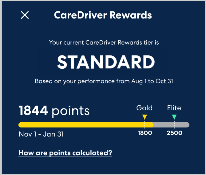 You can learn more about CareDriver Rewards and tiers here.