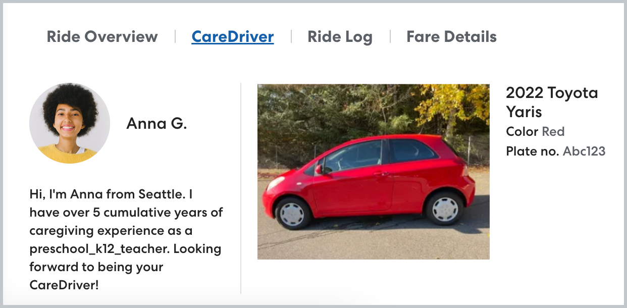 When you claim a ride, the Rider, Ride Organizer, and Rider's Emergency Contact will be able to see your name, CareDriver photo, a short bio, and basic details about the vehicle you drive. This information is also visible in the Waybill: Digital ID, which you may be asked to show at pickup.