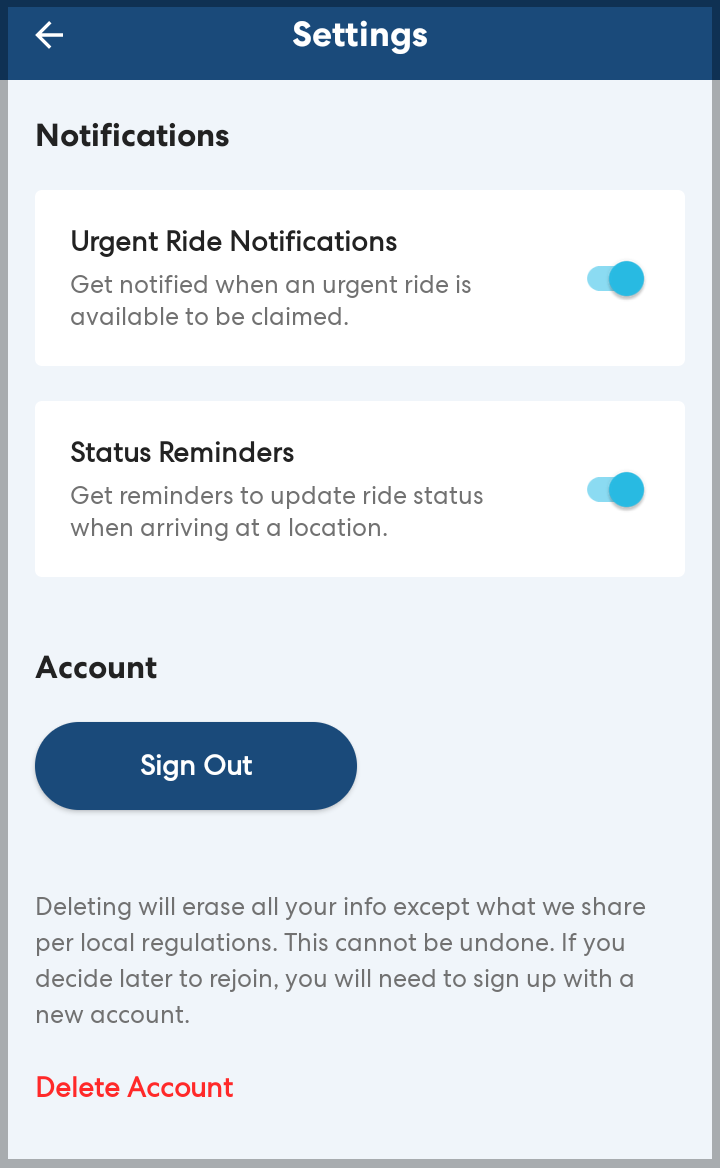Urgent Ride Notifications: Get messages when an urgent ride is available in your area.