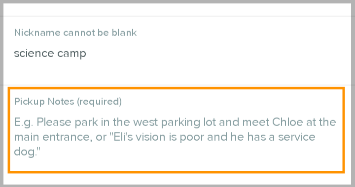 | Note: This information applies to Caregivers who schedule and manage rides for their Rider. If your Rider's rides are managed by a school district or other organization, that organization will manage location notes. |