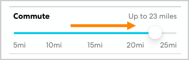 - Increasing your Commute distance. This will show rides that start farther away from you.