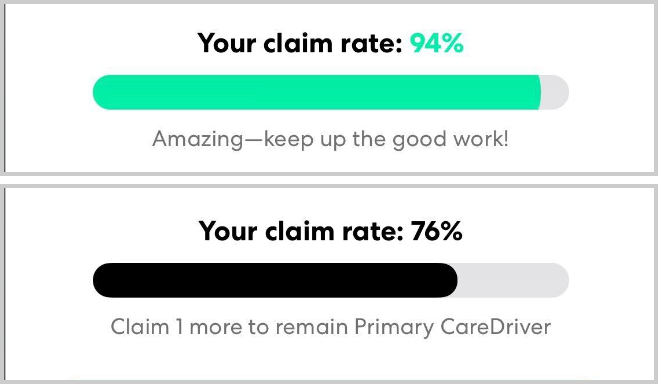 In order to maintain your status as the Primary CareDriver for a series, you must maintain a claim rate of 80% or higher. Your claim rate is calculated over the entire time you have been Primary CareDriver for the series.