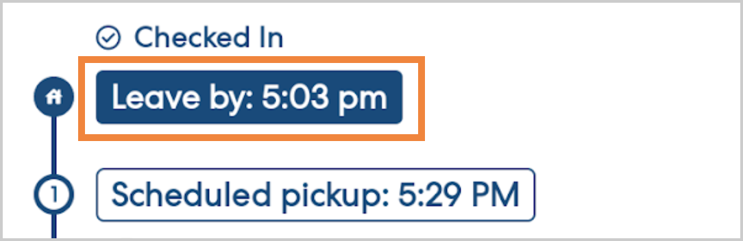 When you check in for a ride, you'll see a suggested time to leave by. This time is a suggestion to help you plan, but you should confirm the best time to leave based on your location and current traffic conditions.