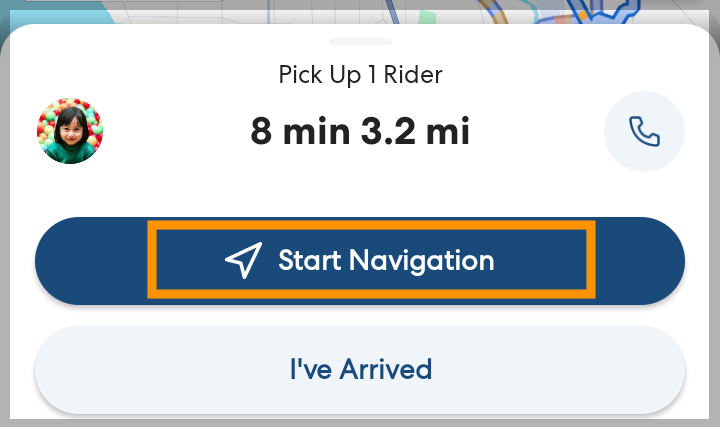 - Tap Start Navigation to open Google Maps and begin navigating to the pickup location.