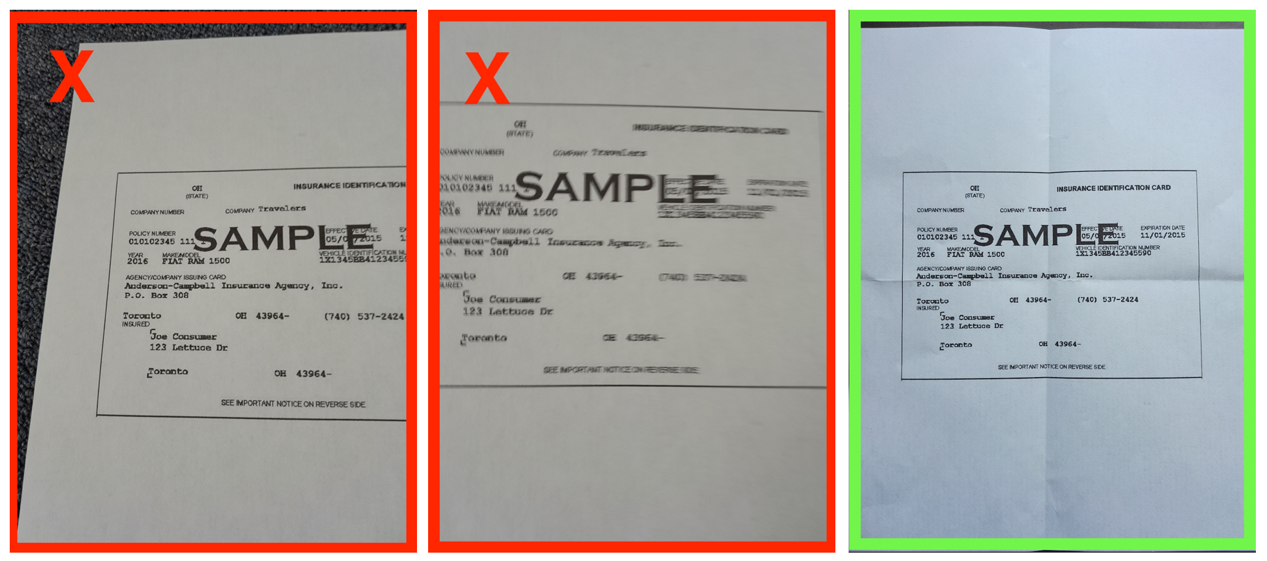 It is important that we are able to clearly read all information on these documents in order to verify them. Follow the tips below for a smooth document upload: