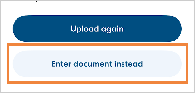 If you're not able to upload a copy of a document that the system accepts, you have the option to type in the information on the document yourself. Tap Enter document instead to enter the information manually.