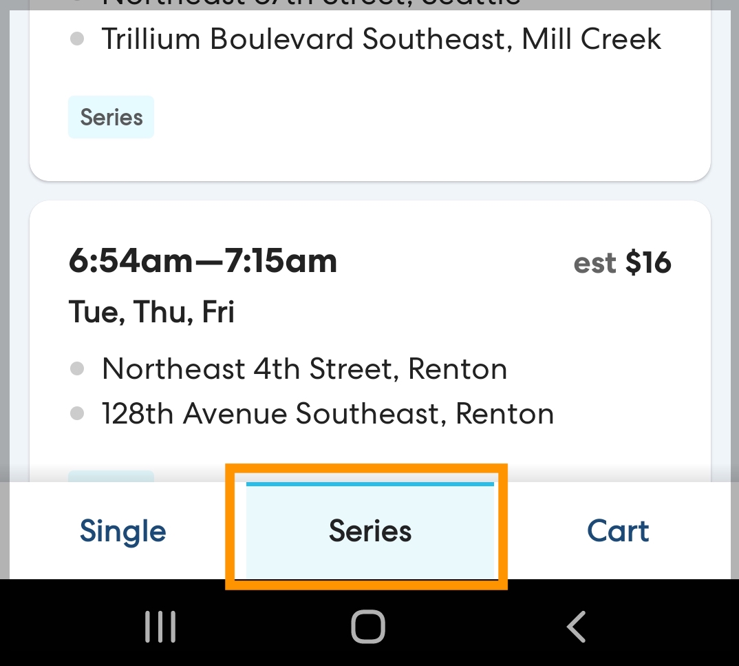 Many riders have consistent schedules and regularly need rides to the same locations at the same times. For CareDrivers who prefer a consistent schedule, predictable earnings, and the opportunity to drive the same rider repeatedly, we bundle these repeated rides into Ride Series.