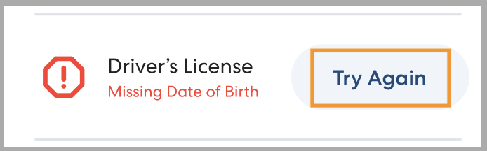 When applying to be a CareDriver, you can upload the required documents directly in the CareDriver app. When you upload a document, you may see an error message like the one shown below warning you about a missing date of birth, VIN, or other specific piece of information.