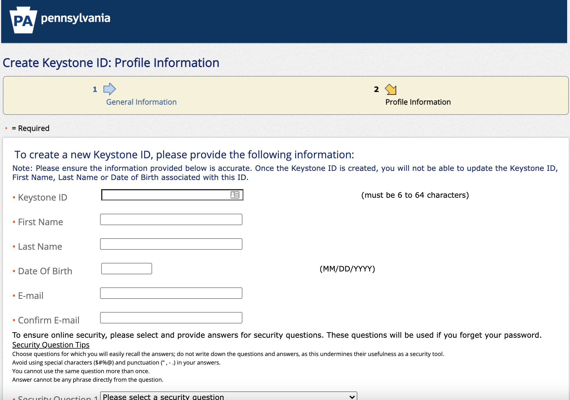 - You will need to create a Keystone ID (this will be your login ID). Please fill in the required information carefully
