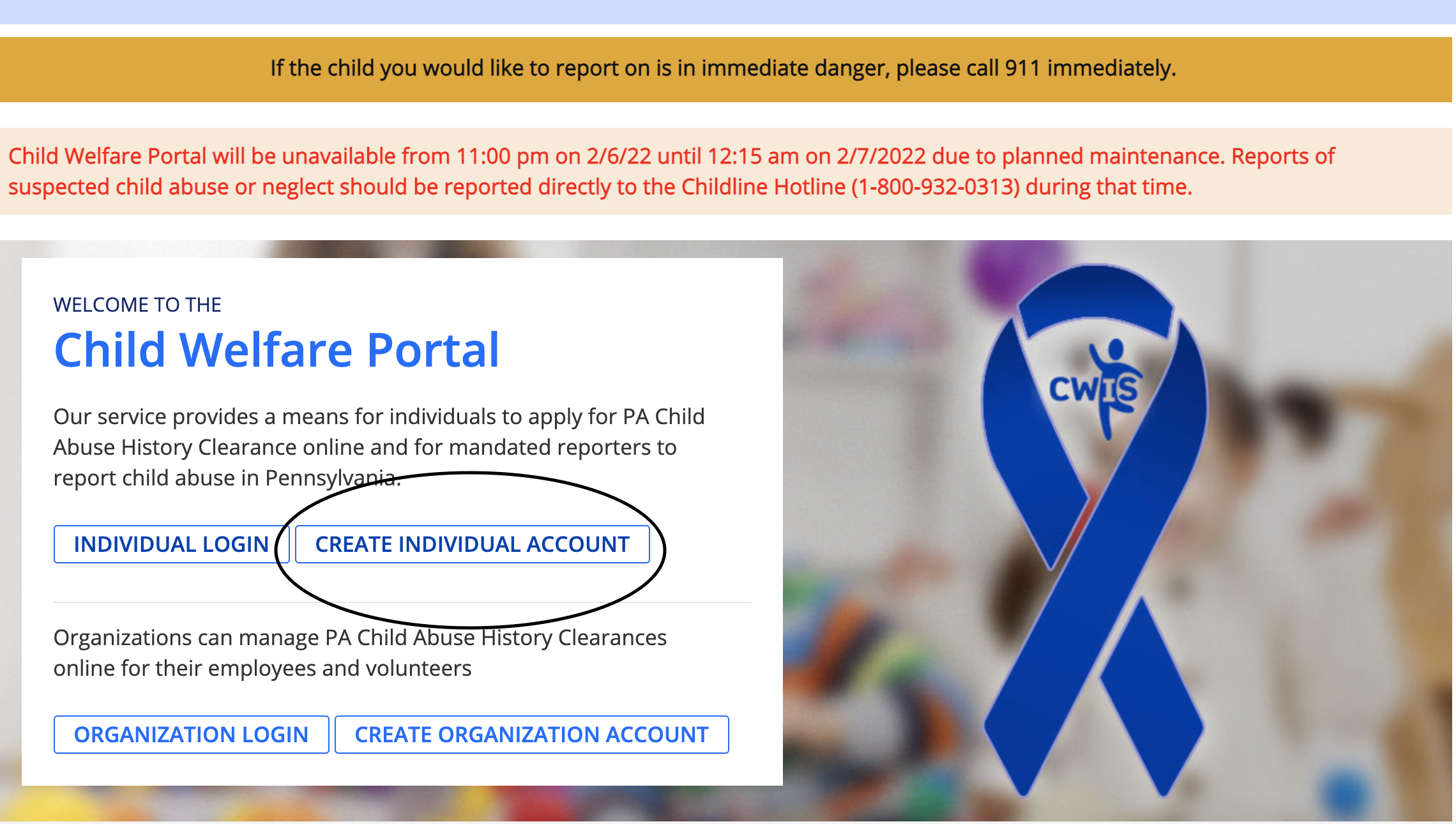- Go to the Child Welfare Information Solution website here.