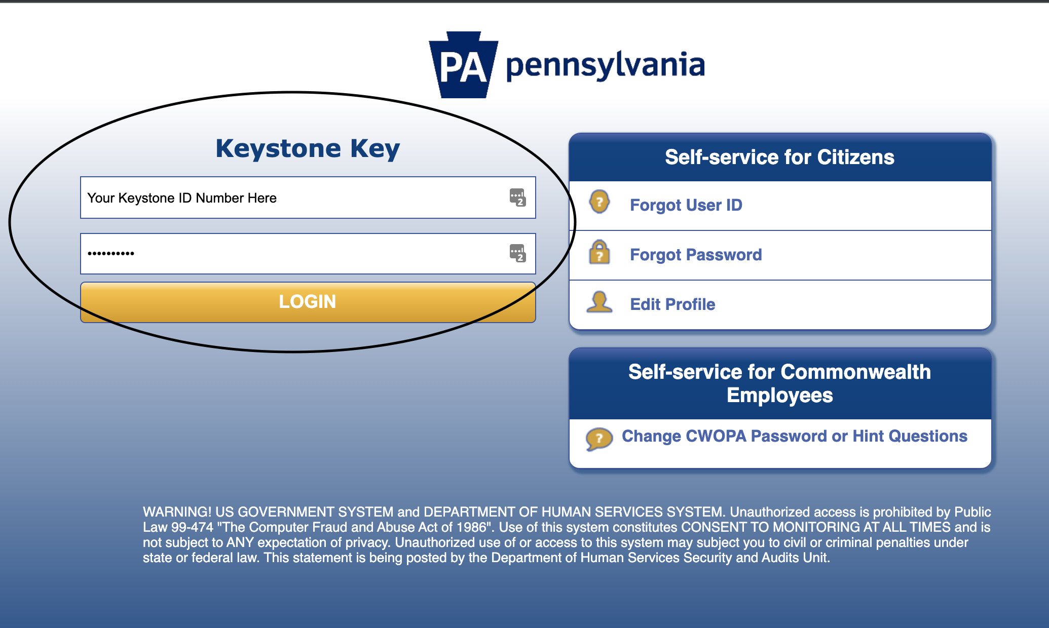 - You will be taken to a login site where you will then enter your Keystone ID and passcode