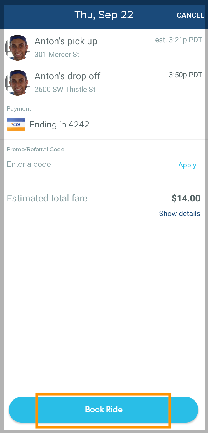 - Review the ride details and tap Book Ride to confirm.