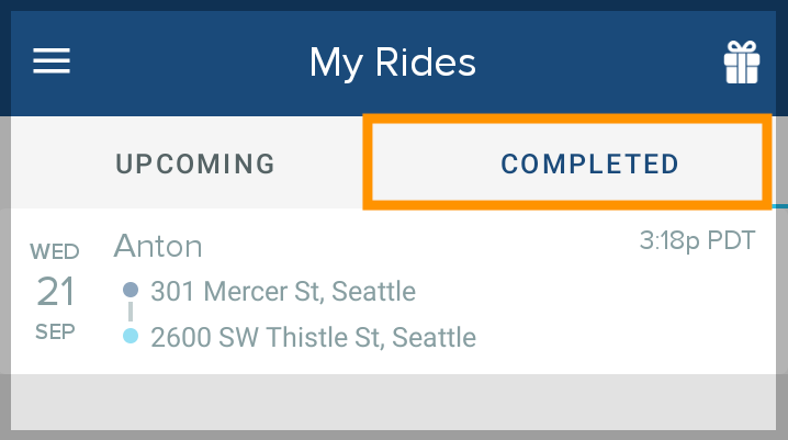 - On the My Rides screen, select the Completed tab and tap the ride you want to copy.