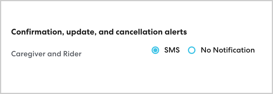 Control whether caregivers and riders with a phone number listed on their profile receive SMS updates about their rides. Read more about what information caregivers receive here.