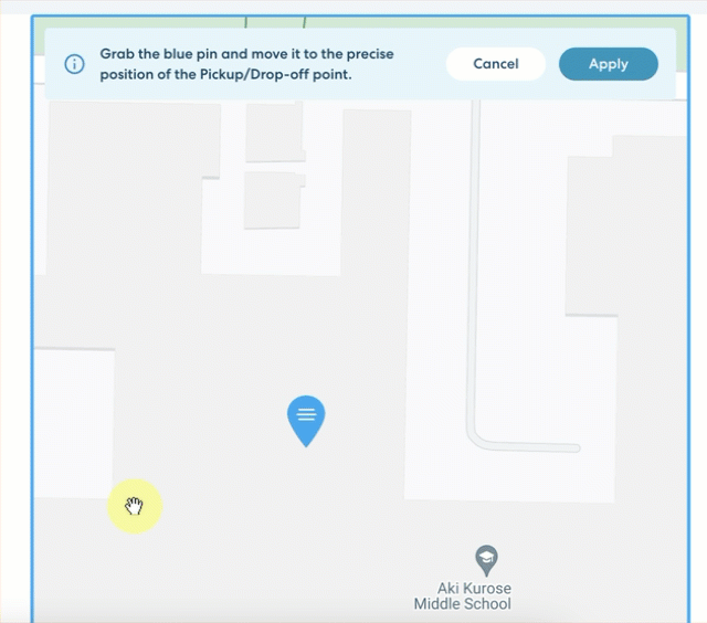 When you enter an address to be used as a pickup or drop-off location, RideIQ uses the default location provided by Google Maps for that address, usually the front of the building. However, sometimes Riders need to be picked up or dropped off at specific places that do not match that default. For example, a school may use a back parking lot for drop-offs. To account for this, you can now set a precise location for any RideIQ location by dragging a map pin to the desired point.