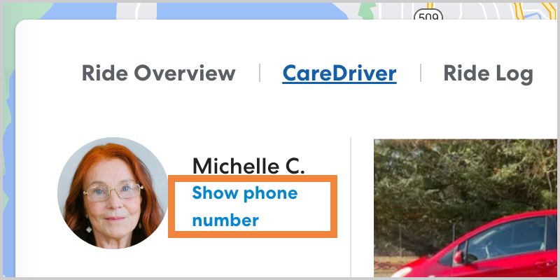 To view the phone number, select the desired ride. On the Ride Overview panel, click the CareDriver tab, then click Show phone number.