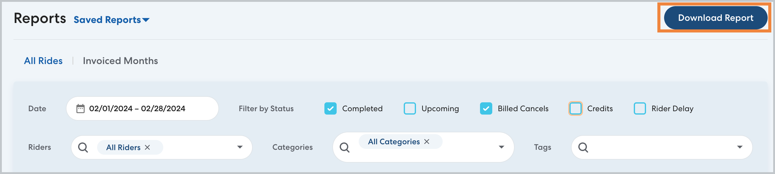 - After creating the report using the desired filters, click Download Report, then click OK to confirm.