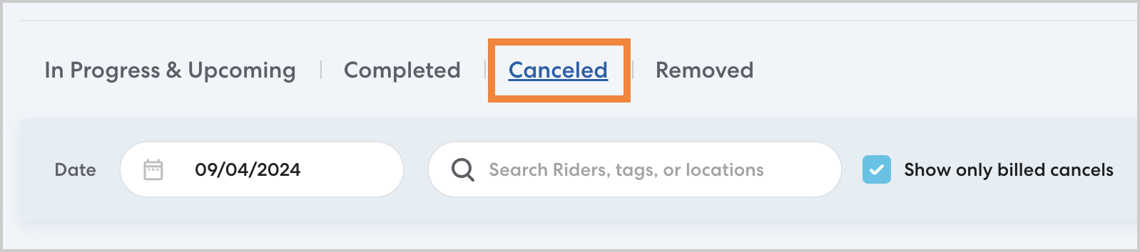 By default, the Canceled rides list is filtered to only display canceled rides that your organization will be billed for. Click to clear Show only billed cancels. You will then be able to see all canceled rides.