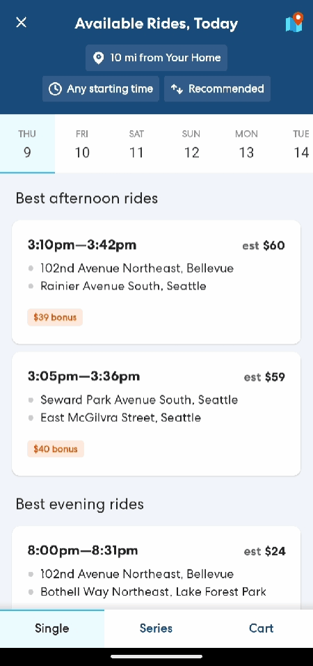 You can also adjust your search preferences to restrict or expand the rides you see based on how far away the first pickup is. Learn more about how to adjust your search preferences here.