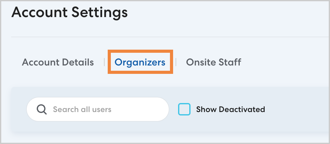 - On the Organizers tab, select the user you want to deactivate.