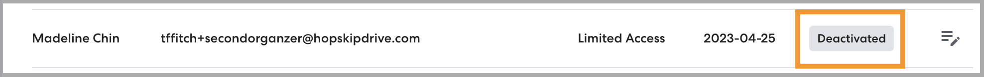 The user will be deactivated. Refresh the page to see the user listed with the Deactivated status.