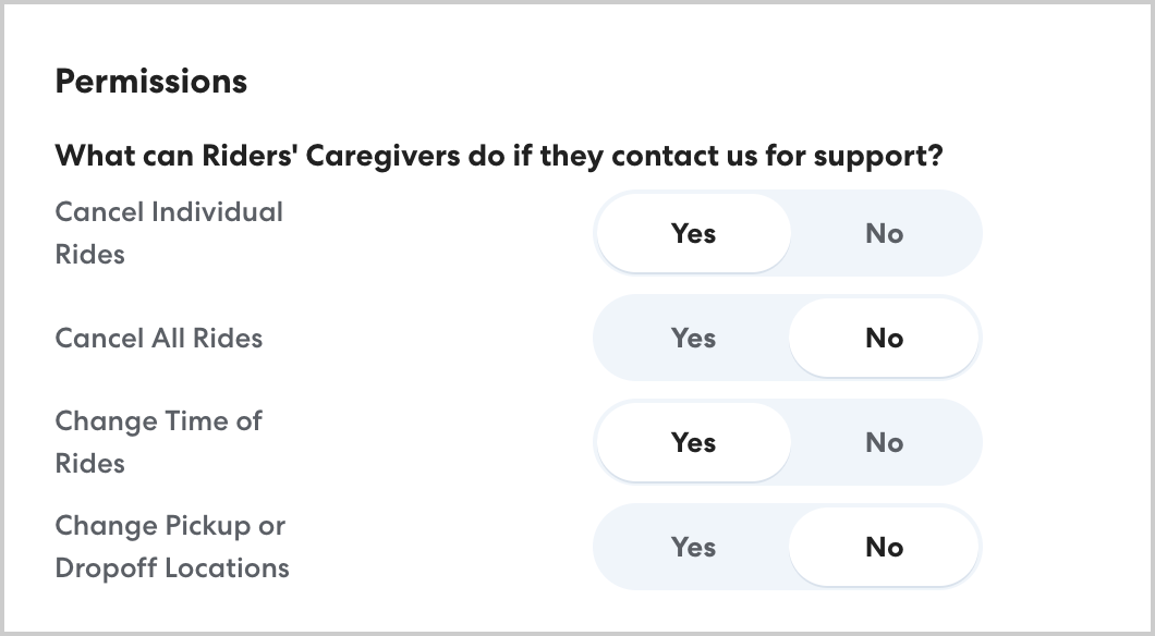 Caregivers can be allowed to cancel or make changes to rides. Your organization controls these settings. Learn more about permissions settings here.