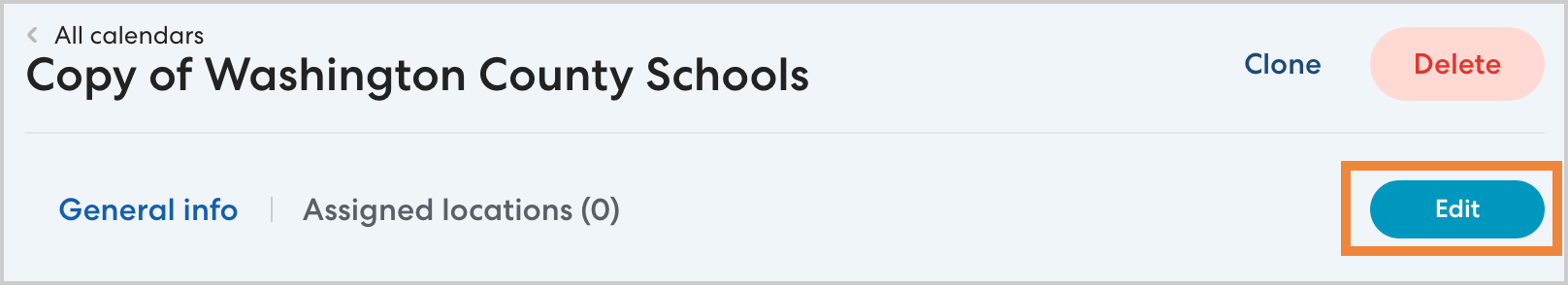 Note: If you do not need to make any changes to the cloned calendar, you can delete the clone and use the original calendar. A single calendar can be assigned to as many locations or rides as needed.