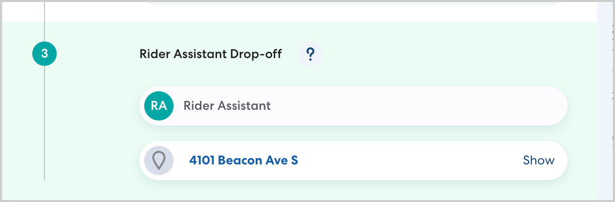 Once a Rider Assistant has been matched with the ride you'll be able to see their name listed on these stops.