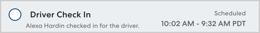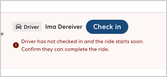Click Check in to confirm that the driver will complete the ride. On the ride detail page, you can see who completed the check-in: