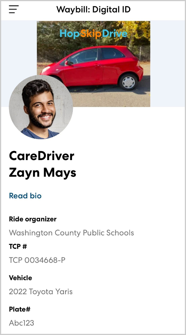 If necessary, onsite staff may ask to see the CareDriver's Waybill. This is a digital ID listing detailed information about the CareDriver. Showing the Waybill is not a required part of the pickup process, but an individual school site or organization may choose to use it. Learn more about the Waybill: Digital ID in this article.