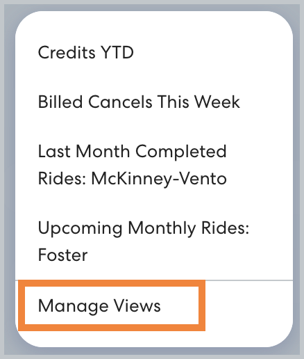- On the Reports page, click Saved Reports, then click Manage Views.