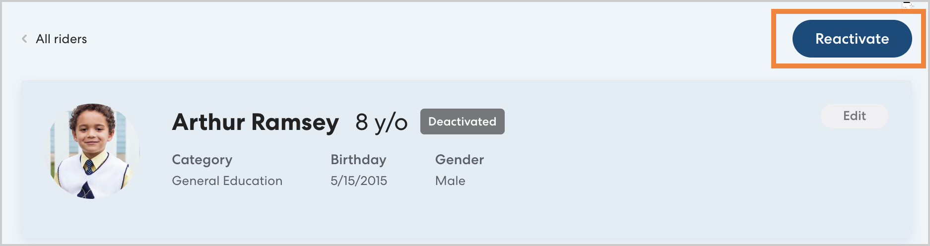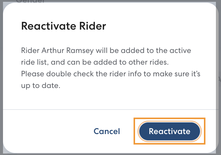 - Click the Rider you'd like to reactivate, then click Reactivate.