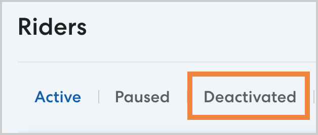 - On the Riders page, click the Deactivated tab.