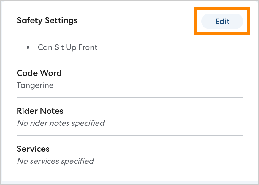 To add or update rider notes, navigate to the rider's profile and click Edit in the Safety Settings section.