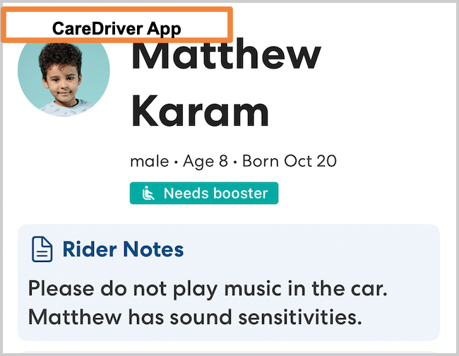 Rider notes are a place to include any information that CareDrivers will find useful when driving a rider. CareDrivers can see rider notes in the app. When writing rider notes, do not include sensitive information such as phone numbers.