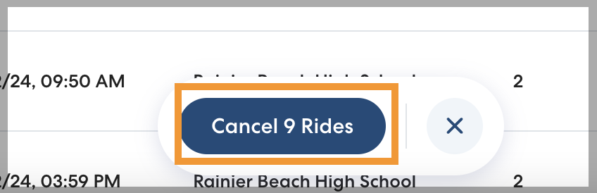 - Click Cancel [#] Rides to cancel all the selected rides.