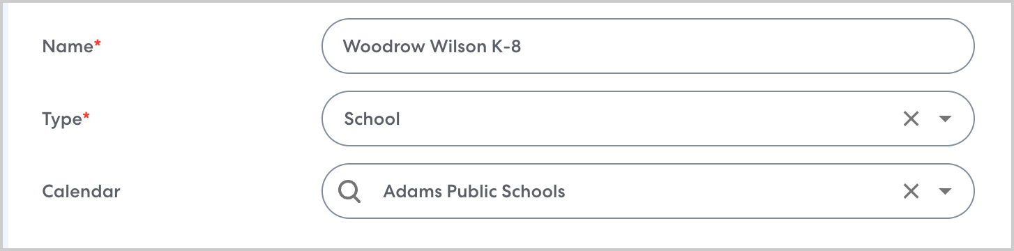 - Optionally, assign a calendar to the location. In general, School locations should be assigned calendars, but they are not necessary for Residence locations.