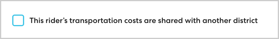 This rider's transportation costs are shared with another district: if your district shares transportation costs for a rider with another district, select this check box to set up shared billing to automatically split the costs. Learn more about how shared billing works in this article.