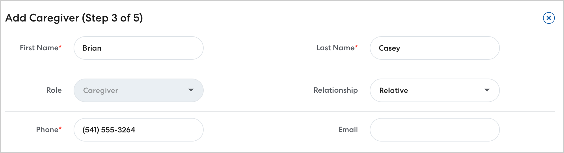 Do not enter the number for a caregiver or other contact here. You can add additional contacts at a later step.