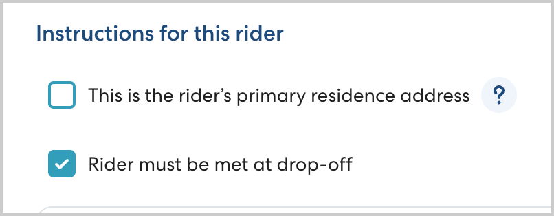 If you are enabling Must Be Met for a rider's residence, be sure you have communicated this requirement to the rider's caregiver. They will need to know where to meet the rider and what verification steps will be required.