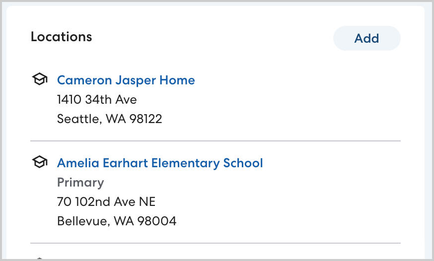 - Navigate to the rider's profile. In Locations, select the desired location or click Add to create a new location.