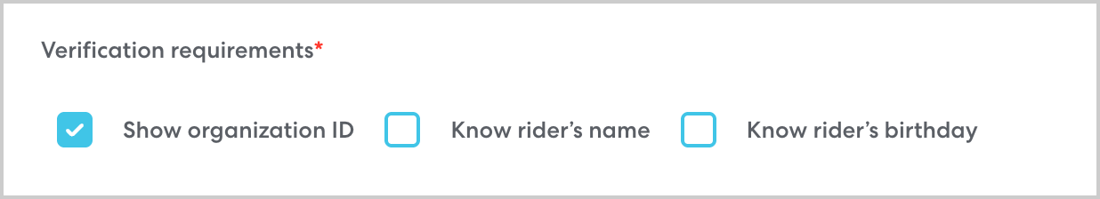 - Select the desired verification requirements. CareDrivers will ask for the selected identity verification every time they drop the rider off. You can choose: