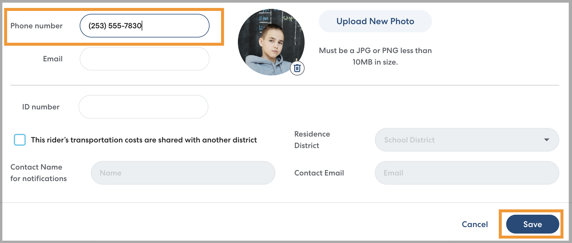 Adding a phone number to a Rider's profile is optional, but when it is appropriate for the Rider it can help ensure that pickups are safe and efficient.