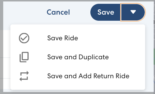 When you create a new ride or Ride series, you have the option to save the ride, save and duplicate the ride, or save and add a return ride.
