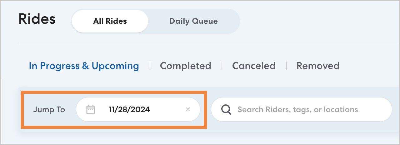 - On the main Rides page, in Jump To, select the date of the break or holiday.